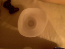 Фото гильзы современного протеза бедра.Были гильзы разные (тоже есть две-три пары стертых джинсов), последняя без того самого выступа, он просто сплошняком залит смолой, с ней джинсы сохранны.