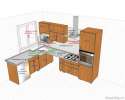 Эту кухню я придумала сама и осуществила.Мойка слева, плита справа. Плита с таймером и самоотключением. Очень это выручает, хоть и дорого.Можно под мойку ногами заехать. Там шкафчик не стала делать. Поставила мусорное бедро и выкатную корзину для овощей.Коляска хорошо закатывается. Получается все под рукой.Между мойкой и плитой рабочая поверхность. Фото попробую позже выложить.
