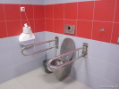 Поручни, кнопка слива, крючок для костылей, веревочка для вызова персонала...