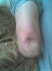 Вот может вот так будет видно.Там где ямочка стоял аппарат поэтому так зажило и под коленкой впадина и шрамы . Рентгеновские снимки пока не получается сделать. Врачи говорили осталась кость длиной 4-5 см.