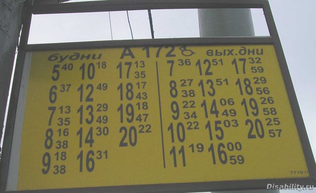 Расписание движения автобуса №172 (доступен для колясочников).