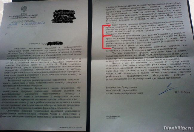 О компенсации ТСРДа вот столкнулся, да не оттолкнусь никак..! У меня конечно случай "выпрыгнувший" из Фед.перечня, но дабы разграничить полномочия ответственных структур по своей теме, я писал в несколько Министерств и Департаментов. Быстрей всего проявили прыть в ФСС РФ, своим ответом чётко дав понять, что занимаются оплатой только всего того (тех), что связано (либо вытекает) из Фед. перечней и списков. Прилагаемый ответ я получил через месяц с небольшим, как отправил свою писанину заказным письмом. По е-mail они отвечают в течении часа, самолично убедился. Приложите копии чеков, ИПР, писменного отказа Вашего местечково-удельно-княжеского филиала ФСС с указанием причины отказа и.., в неё, в родную Златоглаво-Белокаменную..!