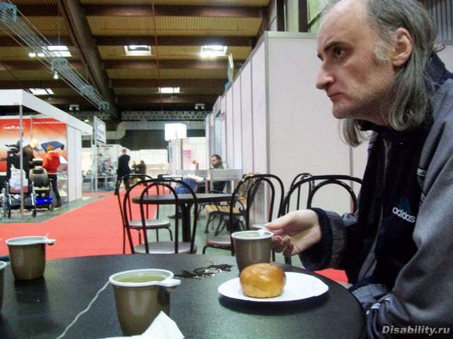 Международная выставка медтехники, средств и методов реабилитации инвалидов...Наверное, об этом думал наш артист Слава, сидя за столиком в кафе.