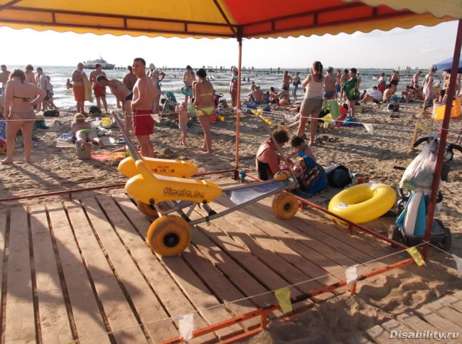 Ответ для Halik:Такая коляска стоит на пляже - участке для инвалидов.Приходил поздно и не видел купающихся на ней. Но сотрудники говорят, что днём она в деле.