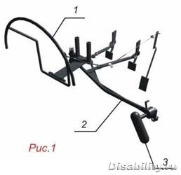 Конечно, если "десять" рычагов, то и четырёх рук не хватит. Для этого совмещаются, например, рычаг тормоза и сцепления (смотреть фото), а газульку приспособить на руль (чем сейчас и занимаюсь). На картинке управление из Татарстана (),сцепление фиксируется, с переключением скоростей проблем быть не должно, а если у тебя автомат, то на место сцепления, можно приспособить "газ", например. У меня как раз такое.