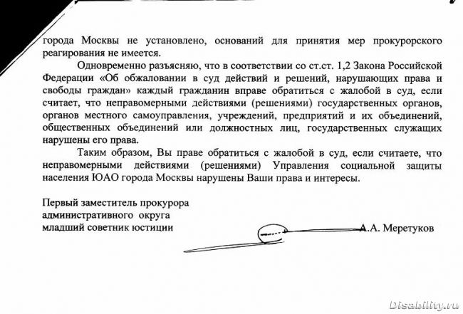 нескромно замечу, что соц.защита ЮАО, в которую я отправила аналогичное письмо, решила, что писал мне его юрист, но я пользовалась только форумом.