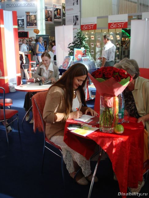 Что было тяжело, - так это огромные толпы народа, через которые трудно пробиваться, тем более если ты на коляске. К тому же, очень неудобно искать книги. Сначала выясняешь у девушки на ресепшене, где какая книга есть. Да, причем, при этом еще небольшую очередь выстаиваешь. Потом ищешь эти стенды, попутно продираясь через толпу, приходишь туда, а тебе говорят, что книги уже нет
