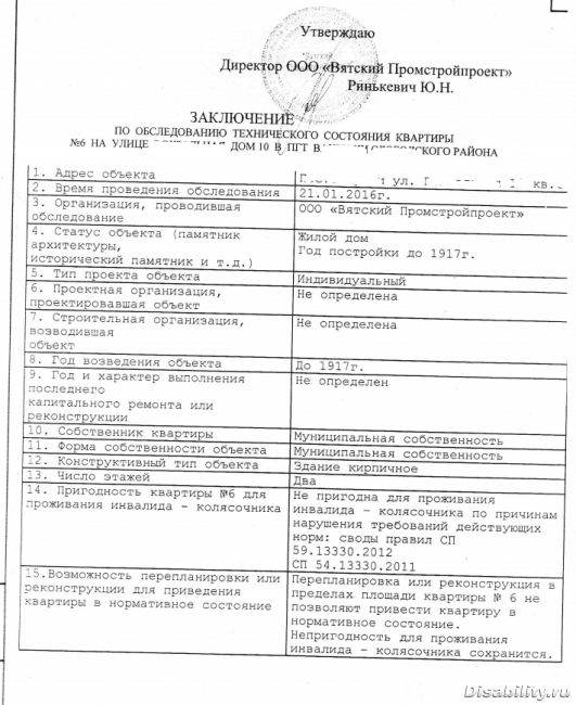 По поводу ответов вам. Заключение о невозможности/возможности переустройства или приведения в состояние соответствующее СП 59.13330.2012 и СП 54.13330.2011 для инва писала та же организация(нанятая администрацией муниципалитета), которая проводила обследование жилья.
