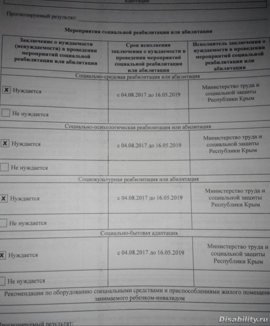 Ответ для chichidze: В ипр сына в 2015 году в разделе "Социально-бытовая адаптация" было вписано- приспособление жилья под нужды инвалида... Месяц назад сделали новую ИПРА- в этом же разделе напротив "нуждается" поставили крестик (типа согласны, что нуждается)... Вписывать что либо нет возможности в новой форме ИПРА (так объяснили). И кстати, врачи мне по этому поводу ничего не писали. Необходимость этого пункта я озвучила на МСЭ и они проставили, то что могли (т.е. крестик напротив "нуждается". Как то так...