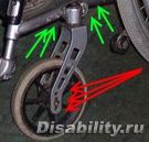 - плоскость смещения колеса вперед-назад паралельна сиденью.
