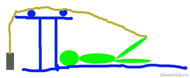 Станок ДикуляНу вот для примера у человека атрофирована опр.группа мышц,например человек лежа на спине не может поднять ногу вверху,ему в противовес вешают вес,и человек прилагая опр.усилия поднимает ногу,постепенно это вес становится все меньше и меньше.потом груз совсем снимают.Так разрабатывают многие атрофированные мышцы,я видел мужчина карандаши кистью поднимал