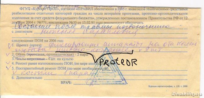 Ортезы (аппараты нижних конечностей)Справка с артопед предприятия,только надпись бла ,как я подписал