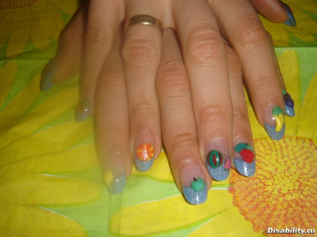 Нарастим ногти?:)это все мои,и синенький френч и с цветуечками,в Саки ездила с золотым френчем