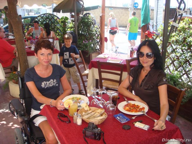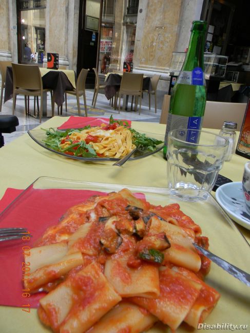 О путешествии в ИталиюНе во многих есть спец. туалеты для инвалидов. Да и двери не могут похвасться шириной...только-только чтобы заехать. Но мы, в основом, ели на улице, в помещении было жарко. Узкие улицы, не широкие двери...нет бескрайних полей...еще одна особенность Италии.