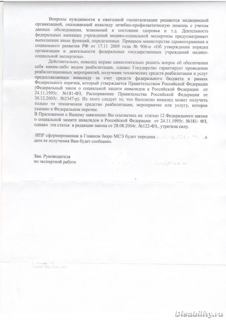 Отказ МСЭ сделать запись в ИПР о нуждаемости лечения в РЦ