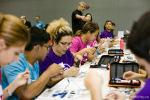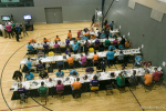 Все они (здоровые) и пришли туда для того, чтобы помочь людям с нарушением двигательных функций... Сидят и под руководством наставников, увлечённо чего-то мастерят. Видно, что всё организованно... судя по их футболкам.