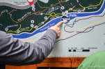 Под стендом, как и в других парках, лежат проспекты-карты с пояснениями, которые люди могут брать с собой, чтобы не заблудиться. А тропы другого цвета… они для людей у кого нет проблем с мобильностью. Пальцем он показывает водопады, куда они добрались, делая по пути все эти замеры.