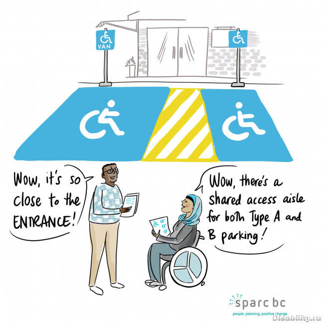 Как живётся инвалиду - колясочнику в Канаде.- категория А… на картинке слева. Это место для таких минивэнов, как у нас, с боковой открывающейся рампой. Там предусмотрено больше места, чтобы можно было выехать из авто на коляске и развернуться.