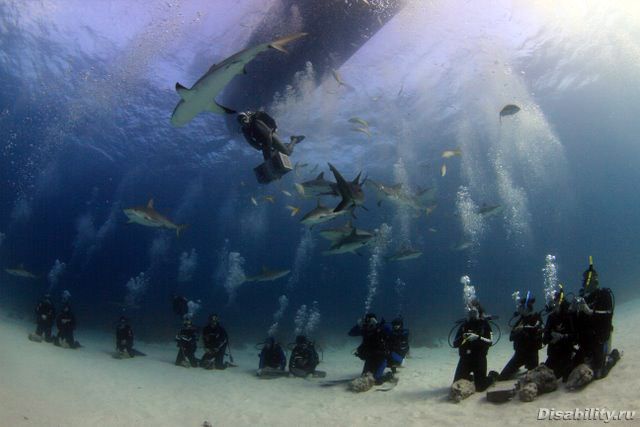 Как живётся инвалиду - колясочнику в Канаде,Погружение под воду обязательно со специально обученными инструкторами. Они обучение проходят, как работать с инвалидами. Конечно, есть некоторые ограничения по здоровью. Нужно иметь здоровое сердце, лёгкие, давление в норме. По-моему, вес должен быть не запредельно высоким.