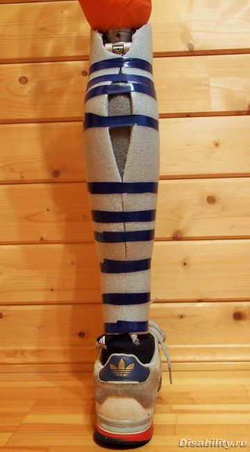Для плановой регулировки протеза пришлось прорезать паралон под коленом и уже не стали его заклеивать после!