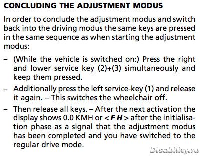 - затем следует нажать и отпустить левую сервисную кнопку (1). - Таким образом, Вы отключите кресло-коляску.
