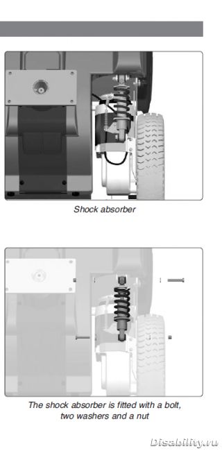 По мне на Пермобилах очень удобные амортизаторы,жёсткость пружины регулируется под массы больного индивидуально,длина амортизаторов примерно 15 мм,точнее длину могу вечером выложить,