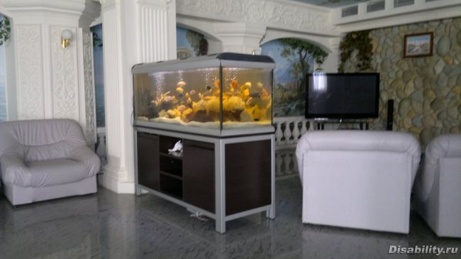 ЦВМиР - Реабилитационный центр на Лодочной.Общий план. Слева виднеется вход, барная стойка, за креслами столики на которых мы по вечерам играли в покер