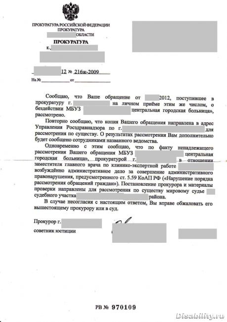 Интересует ответ на поставленные вопросы (по ответу Прокуратуры областной): Если правильно понимаю, то Департамент должен был мне просто вернуть, перенаправленное им Администрацией правительства области, заявление с разъяснением (согласно п.7 статьи 8 ФЗ 59)? Куда мне сейчас обращаться к вышестоящему Прокурору (суд неприемлем, т.к. сам я не смогу в нём принять участия) - в прокуратуру России?