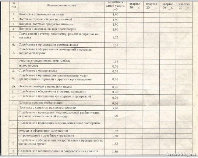 Новый закон о социальном обслуживании.Я не спорю..Наверно цены на региональном уровне и тут от власти многое зависит. Я сам не пользовался, просто есть к тетрадке листочек с расценками у меня.У кого то так же уборка в часах измеряется, у нас нет такого, у нас цена единая причем смешная,ни минут ни часов. Возможно и это обрубят не знаю. вынос мусора 90 копеек.