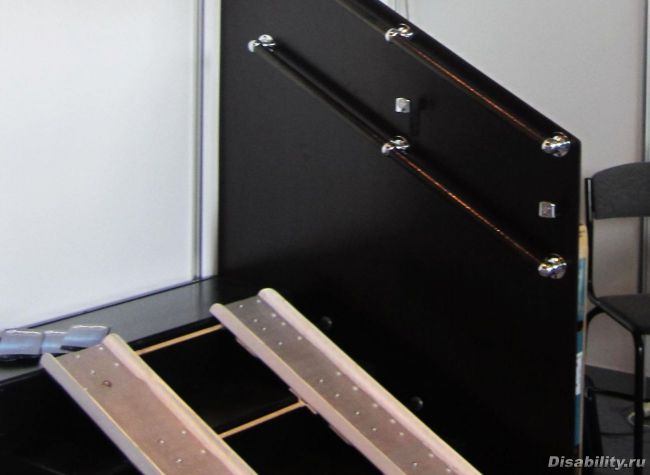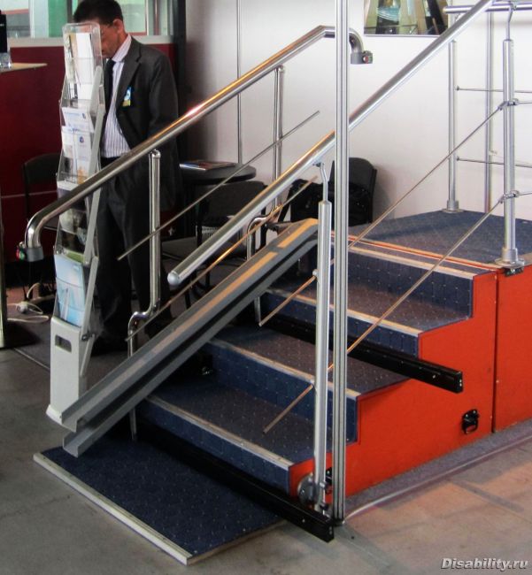 На выставке выставлен подъемник, который заказан московскими чиновниками уральскому бюро. Не смотря на смелые технические решения и кое какие достижения можно констатировать - чиновники намеренно тормозят научнотехнический прогресс в области безбарьерной среды. очевидно. пока на повестке дня безбарьерная среда они уверенно осваивают деньги, загружают людей работой и создают для них новые рабочие места. например к подъемнику обязательно должен быть прикреплён кто-то слабоумный, способный катать инвалидные коляски с инвалидами и тупо нажимать за них кнопку ПУСК на электроподъемнике. потому что умный на такой работе обязательно внесёт творческую струю - в России это будет как всегда - пьянство, умным ничего не останется кроме пьянки. Круг замкнулся.