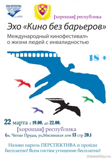 Друзья! 22-го марта с 19.00 до 22.00 в тайм-кафе [хорошая] республика пройдут показы лучших фильмов "Кино без барьеров". Вход по паролю ПЕРСПЕКТИВА, а также угощения бесплатно! Приходите, посмотрим хорошее кино, пообщаемся и просто отлично проведем время.
