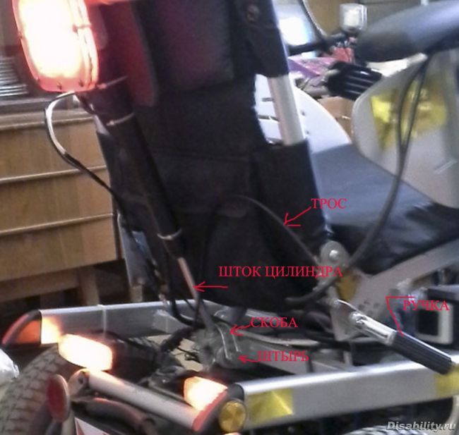 Электроколяски АрмедПневмоцилиндр держит спинку коляски и регулирует её наклон (см.фото)