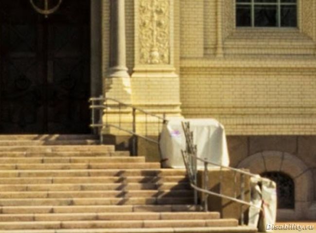 Вот так сделано в Кронштадте. Варианты установки пандуса-подъемника безусловно есть. К сожалению, даже на таком духовном уровне думают вполне по-земному.., если полтора инвайта за год придут в собор, правда помочь, должен сказать, вызываются без проблем, зачем что-то делать, а то что формальный, уродливый пандус, как в затрапезном магазе стоит, не трогает..