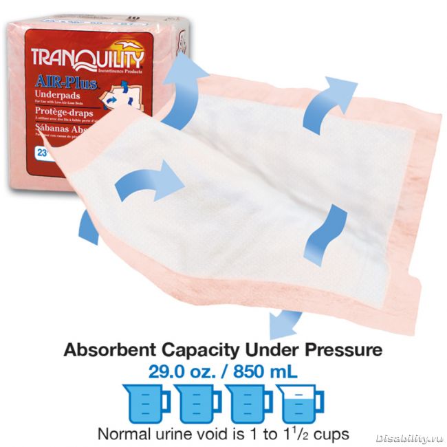 противопролежневый матрацДля таких матрасов (low air loss) есть определённая категория пелёнок. Вот эти (на фото) впитывают до литра жидкости. Но они всё равно "дышат". И воздух с матраса полностью проходит сквозь них на тело.