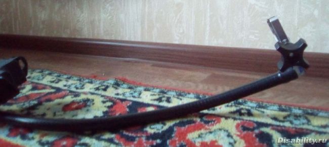 Фиксатор для планшета, который крепится к электроколяскеНа моей электроколске фиксатор для маленького монитора (сама трубка) более мягкая, легко сгинается в нужную мне сторону.