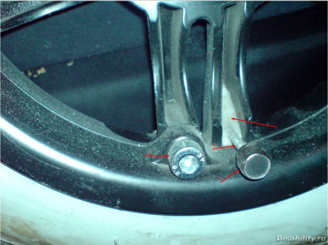 Почему не показать, пожалуйста. Правда для того, что бы сделать фото пришлось снова снимать колесо, ну да ладно. Не сделал сразу фото, не думал, что они нужны будут.