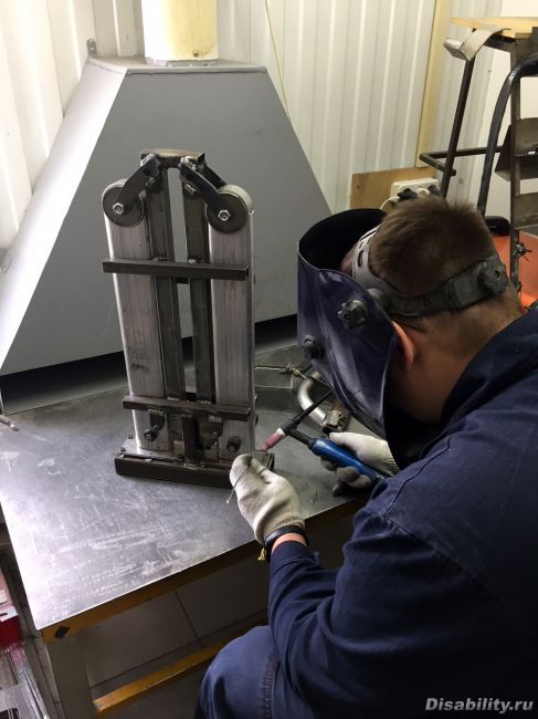 Специально вызванный из КНР китаец варит нам лонжероны электроколяски "Пони" второго (овального) поколения. Кстати, в самом Китае коляски с такими лонжеронами будут продаваться только в следующей пятилетке.