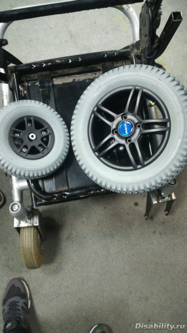"Pimp my wheelchair" или "Прокачай мою коляску"Привет. Точно не знаю диаметр, 12 дюймов задние. Сейчас установлены 14 дюймовые задние и 10 дюймовые передние. Спасибо за поправку, я не делал точных замеров. 10 км/ч показал навигатор на телефоне, но нет причин ему доверять, откровенно говоря.