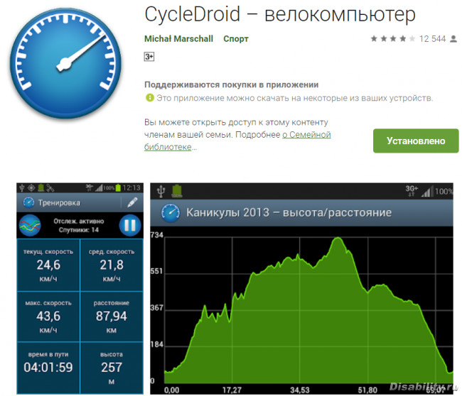Определение скорости.Я пользовался CycleDroid – велокомпьютер, отличное приложение, через GPS работает.