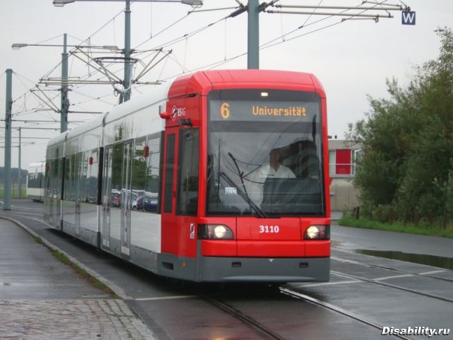 городской транспорт заграницейизвиняюсь, из трамвая тоже выезжает пандус. А чтобы забратья на патфому предусмотрены специальные заезды.