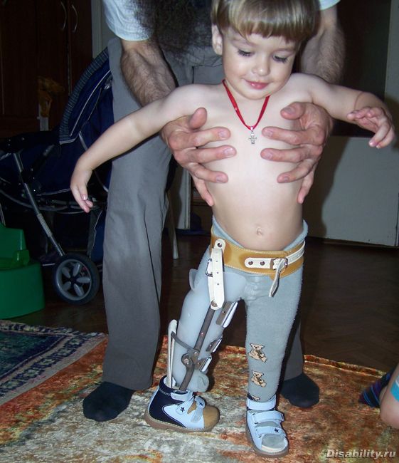 Я отвечаю: «Конечно, вырывался - держали втроем». Он сначала говорил, что надо было под наркозом делать. Теперь отказывается от своих слов, говорит, а вдруг что с ребёнком случится. Он маленько подделал протез, и Миша лучше стал одевать его - без вкладыша - вроде бы опора получилась на седалищную кость. Но он при "ходьбе" (держим почти под мышками, Мишка здорово загребает ногой описывая огромную почти окружность иногда) При "ходьбе" он сваливается. Т.е. сначала начинает косить внутрь, а потом сваливаться. Мы носим его теперь без вкладыша, на толстые колготки. А с вкладышем